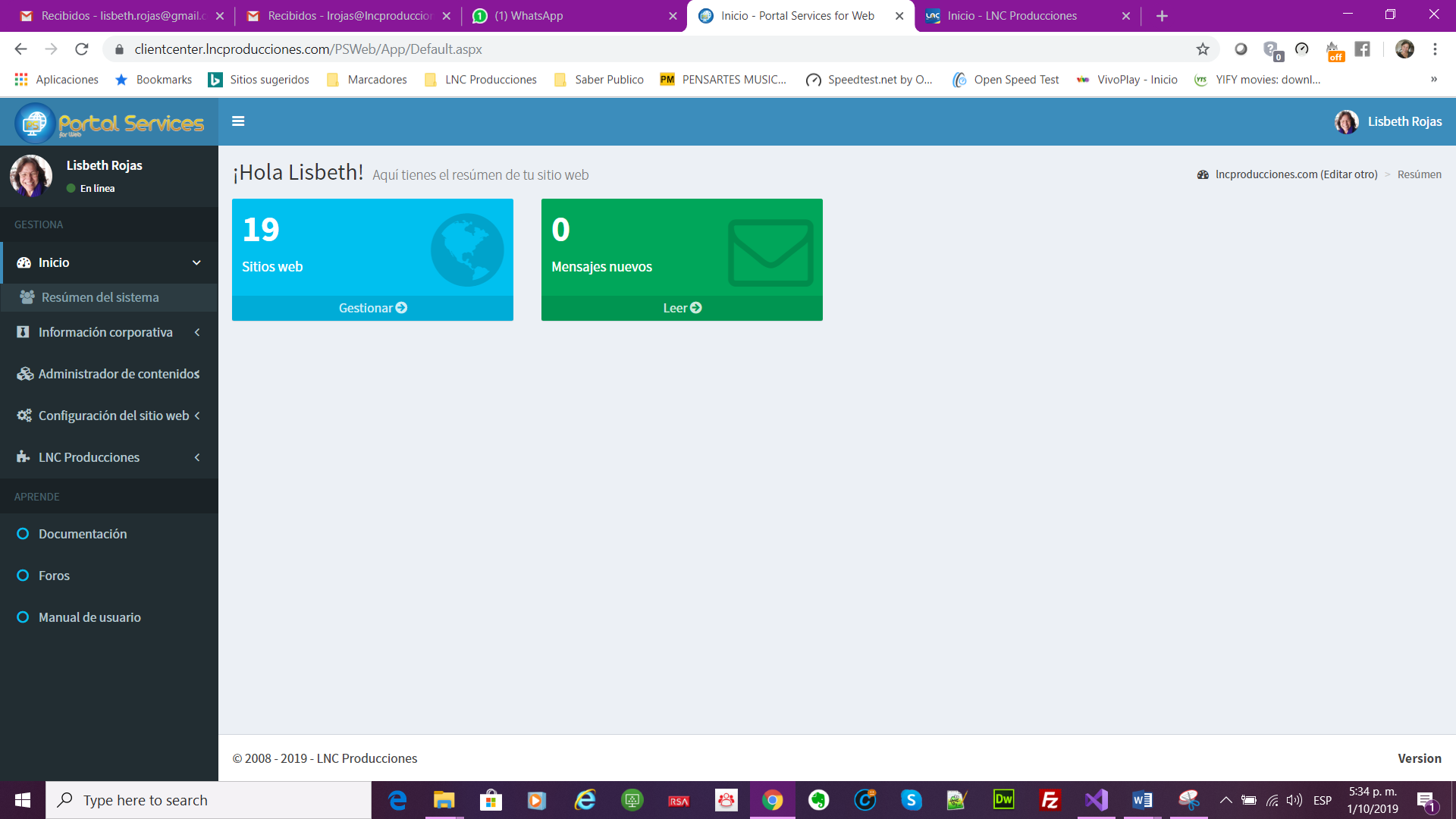 Una vez que hayas seleccionado el sitio web que deseas administrar, o si tu tipo de usuario solo permite administrar un sitio, podrás observar la pantalla principal del sistema