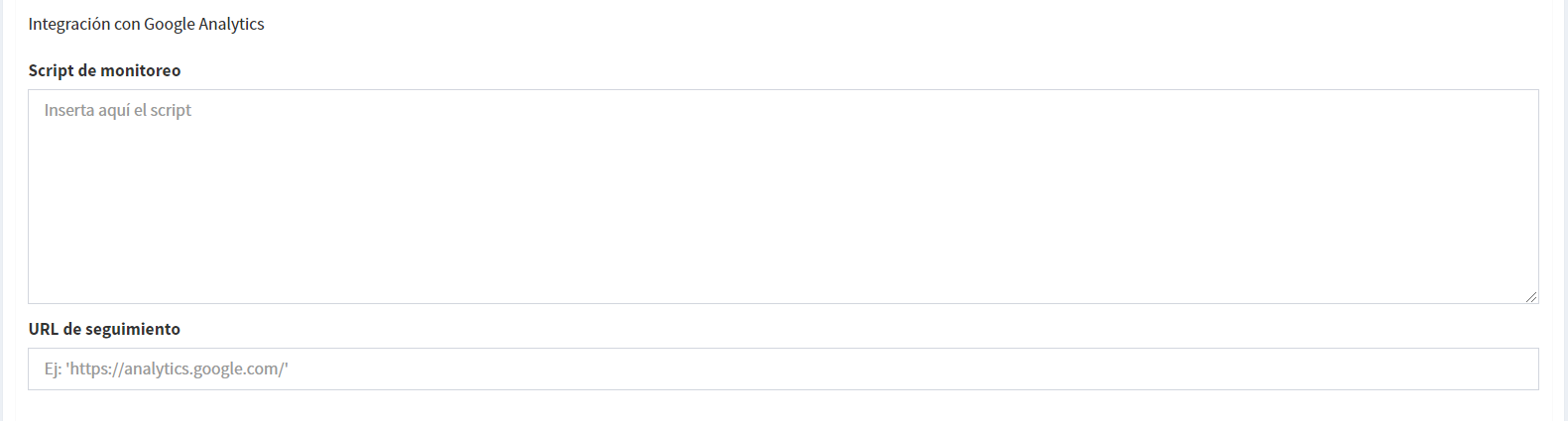En la pestaña Estadísticas, podrás definir el comportamiento de la integración con los manejadores de estadísticas de uso del sitio.
