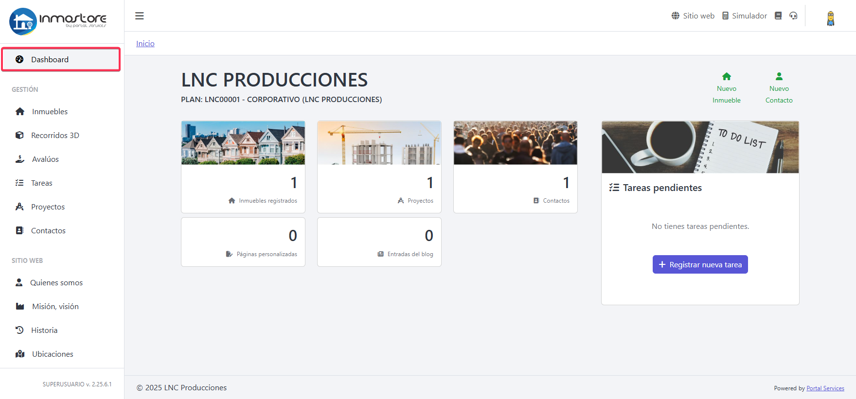 Desde el panel puede agregar tareas pendientes para su gestión de la inmobiliaria.