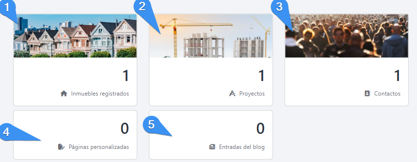 Puede añadir un nuevo inmueble o contacto haciendo clic en la parte superior derecha del panel.