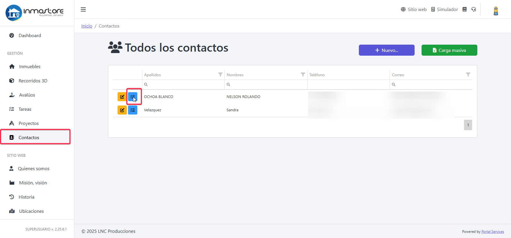 Ingrese a la sección de "Contactos" y luego haga clic en el botón de "Actividades".