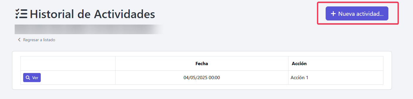 Agregue una nueva actividad al hacer clic en el botón "+ Nueva actividad"