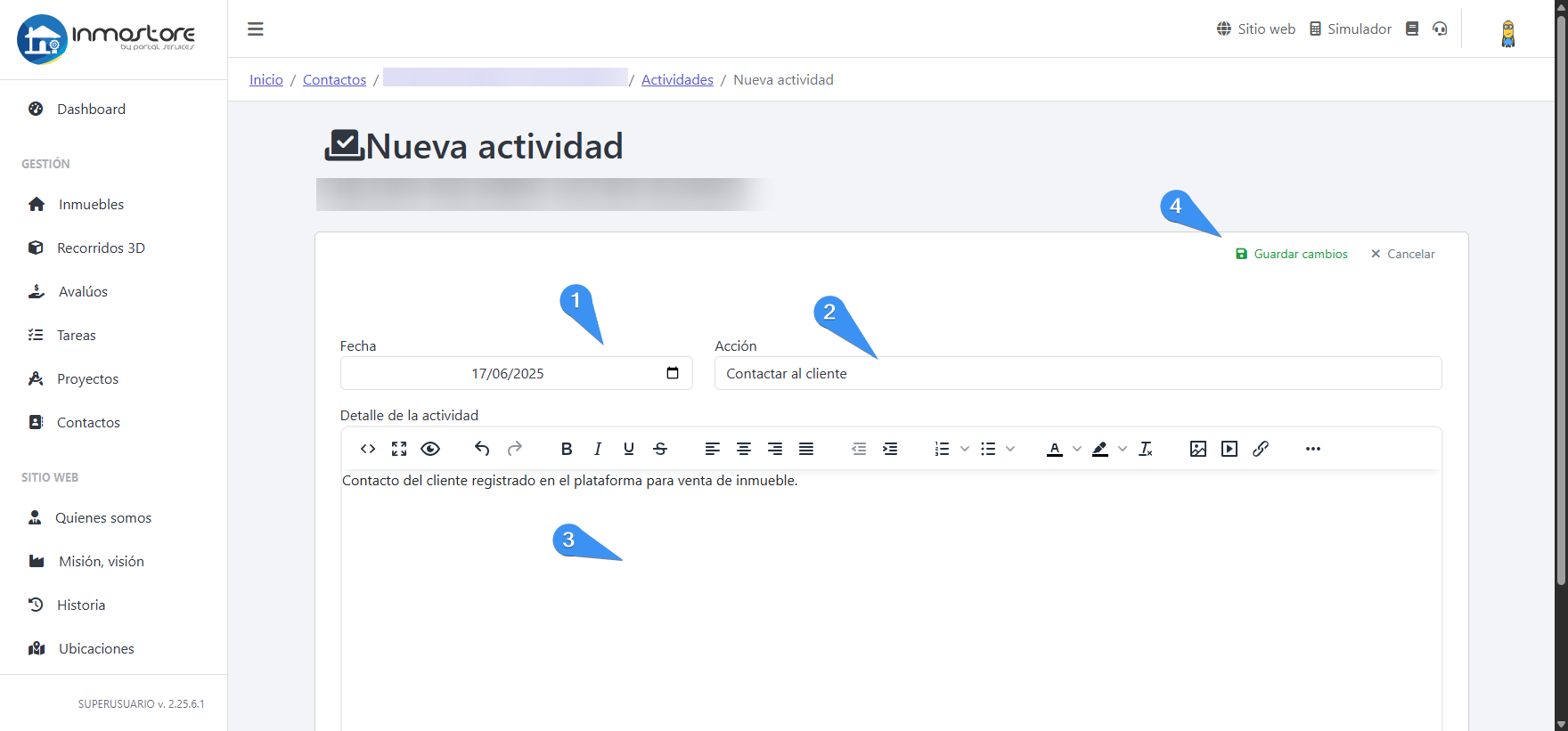 3. Detalle la actividad realizada luego de realizar el contacto.