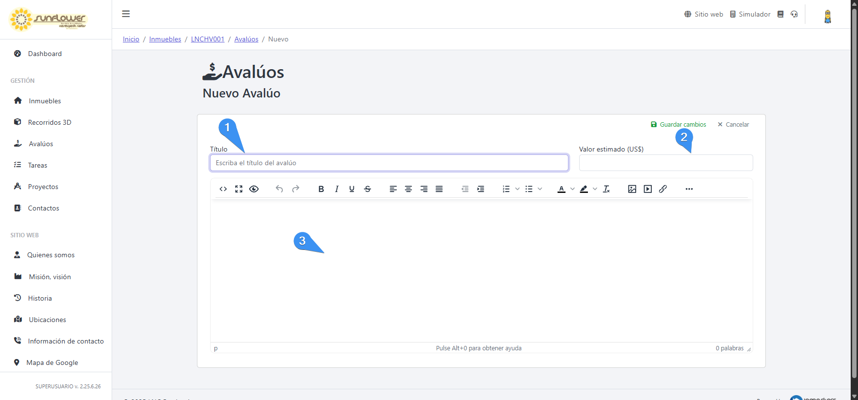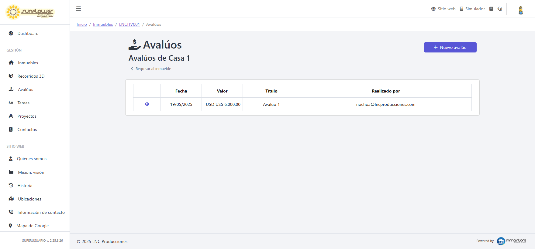 En el siguiente artículo se mostrarán las secciones para realizar procedimientos de avalúo sobre propiedades inmobiliarios.