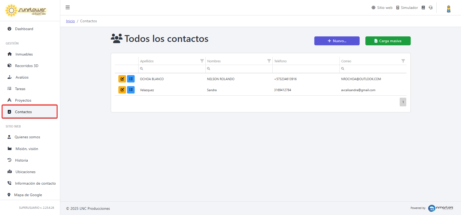 De este modo quedarán cargados varios contactos, los cuales visualizará desde el módulo de contactos.