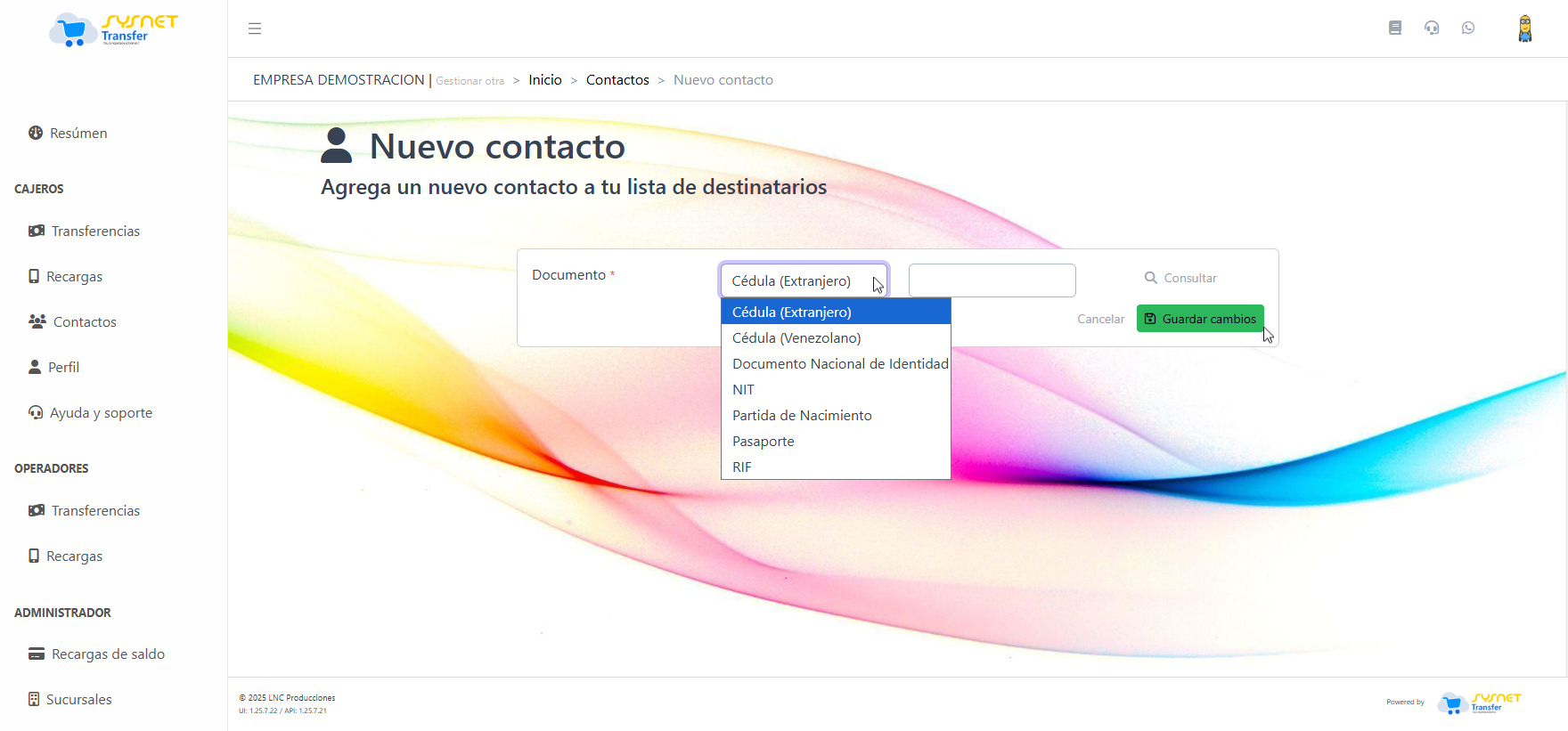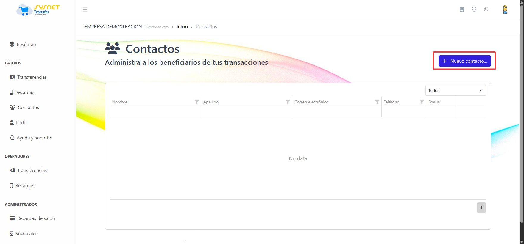 Luego, de registrar el contacto intente volver a buscar el contacto para realizar la transferencia.