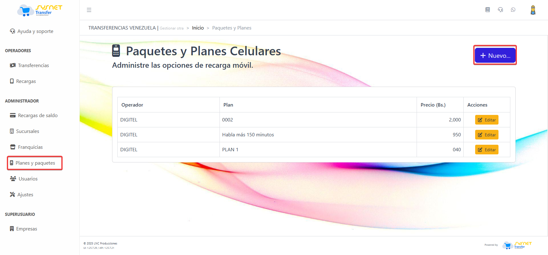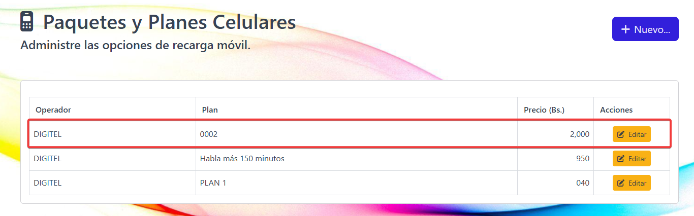 Asegúrate de que el paquete aparezca correctamente en el catálogo de planes disponibles.